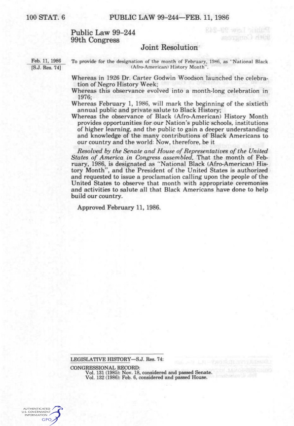 Black History Month Becomes Official